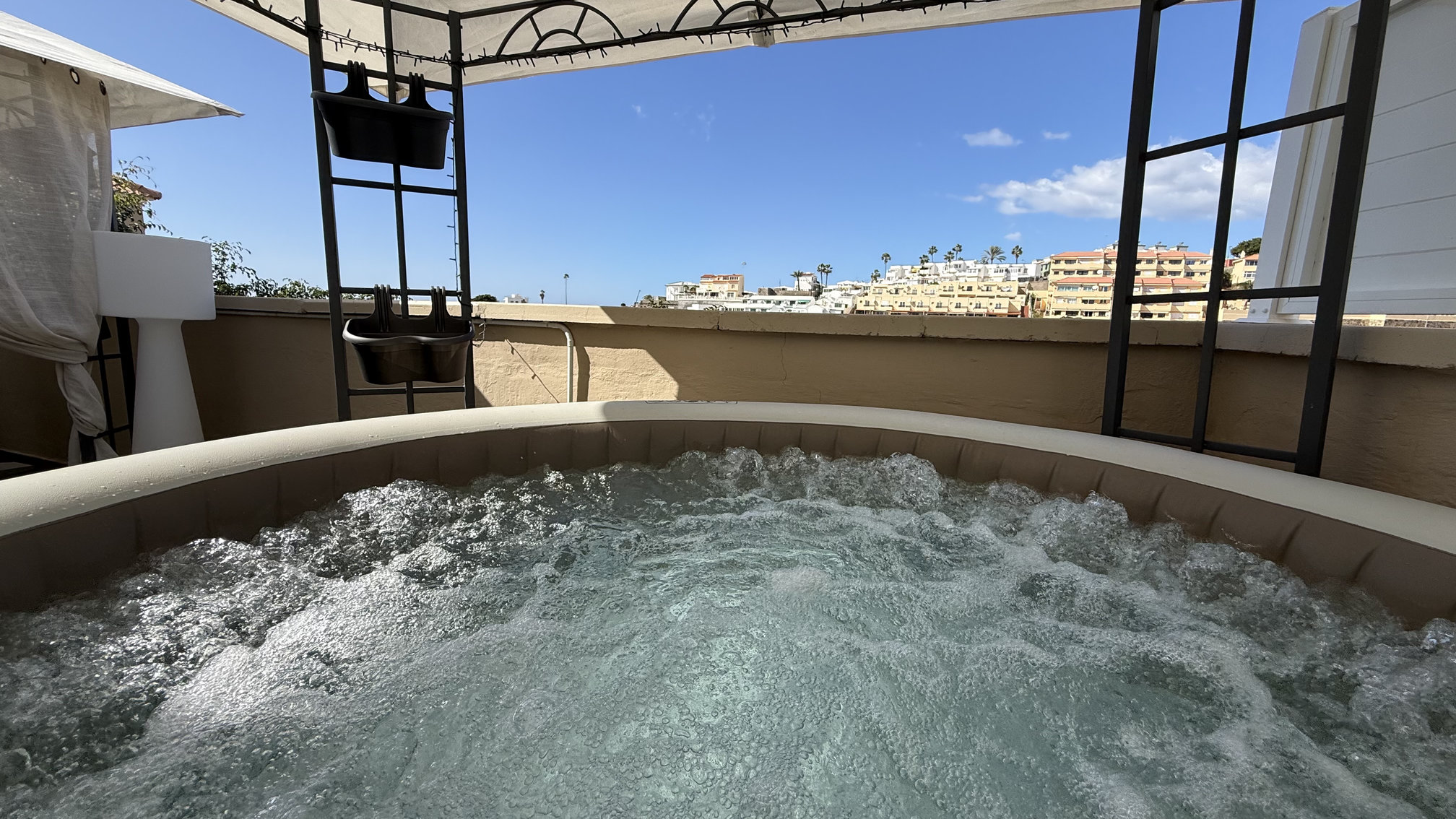 Disfruta de este apartamento de larga estancia en Loma Dos, Arguineguín, con gran terraza privada de 110 m², jacuzzi y vistas al mar.